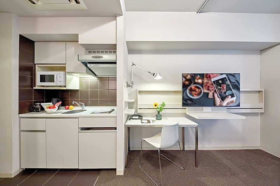 The air-conditioned studio features a smooth modern style. The fully equipped kitchenette features a variety of cooking utensils, cutlery and tableware. The private bathroom comes equipped with a bath and shower. Free toiletries, a hairdryer and slippers are provided. Guests can enjoy DVDs on the flat-screen TV. For their convenience, guests will find personal lockers and ironing facilities, as well as a seating area and a desk.